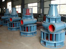 水輪泵中的水輪機一般為軸流式,離心泵的壓出室一般采用蝸殼式。泵設在水輪機之上,整機全部淹沒在水中運轉,因此無需吸水管。泵和水輪機之間采用水潤滑軸承。水輪泵結構簡單,制造容易,操作方便,維修費用很低,不抽水時接動力輸出軸可帶動加工機械或小型發電機,特別適合于山區農村使用。沿海還建有利用潮汐能的水輪泵站。